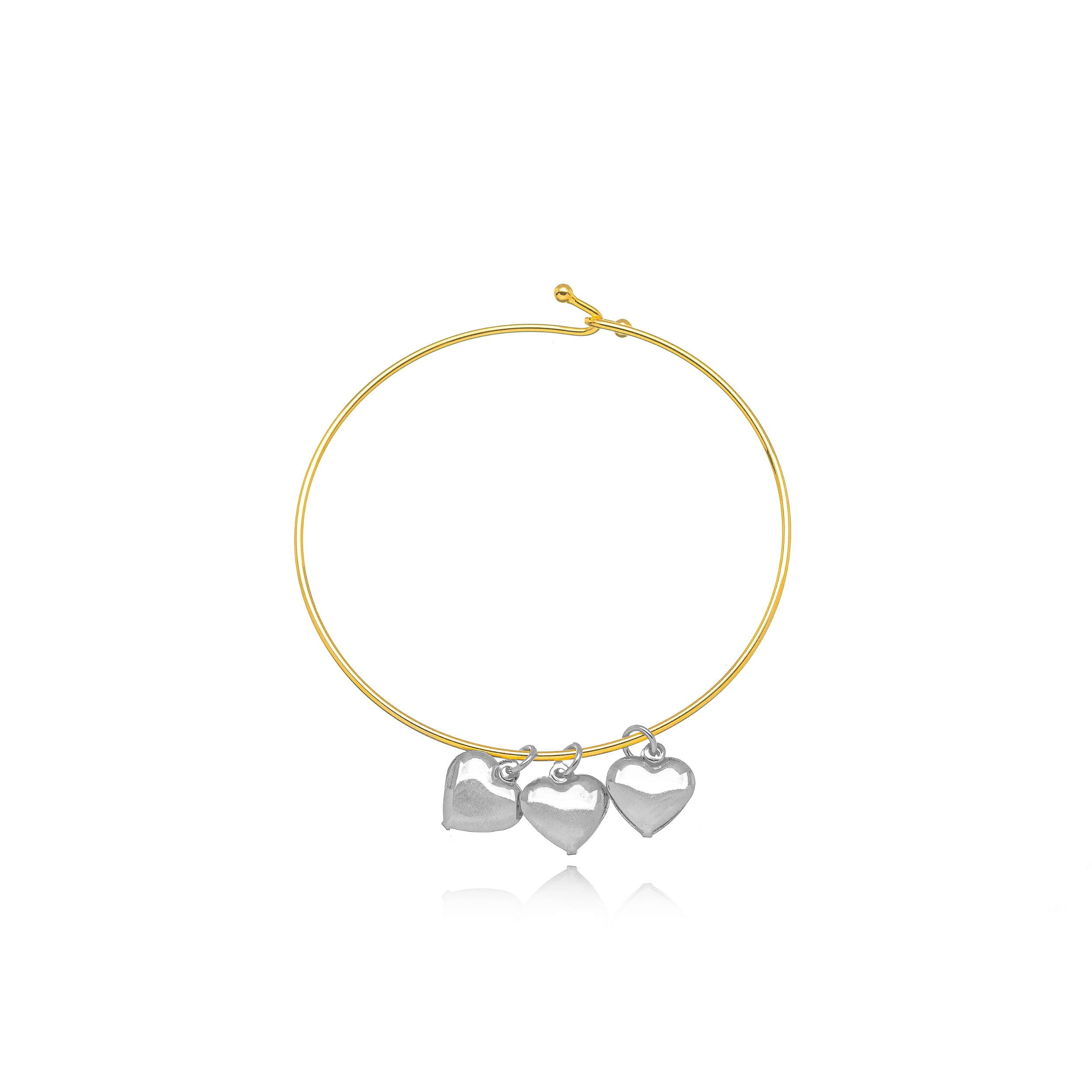 Semijoia Heloísa Maria - Bracelete Três Corações Confeccionado em Banho de Ouro Amarelo 18K e Ródio.