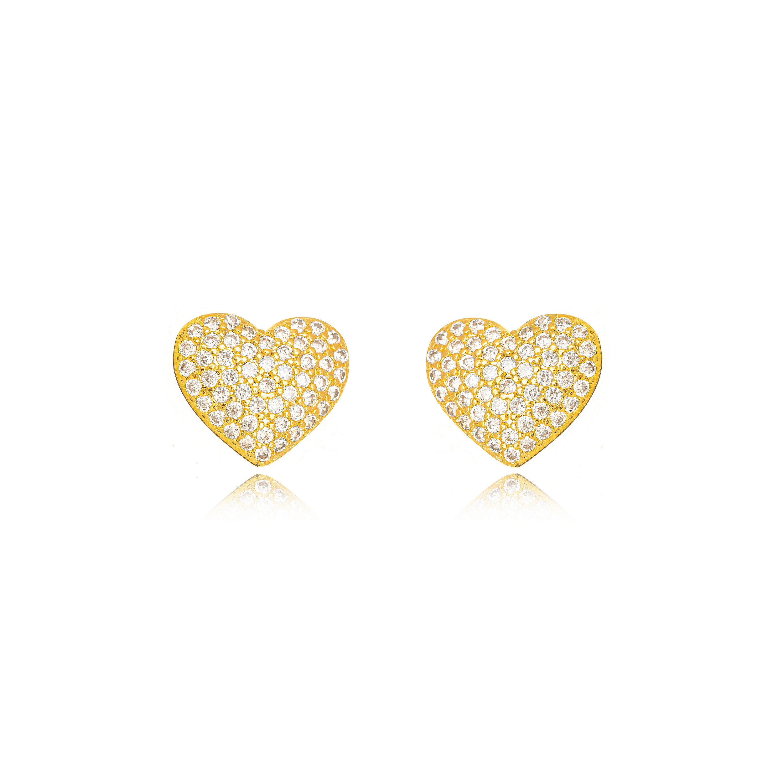 Semijoia Heloísa Maria - Brinco Coração Micro Zirconia Confeccionado em Banho de Ouro Amarelo 18K.