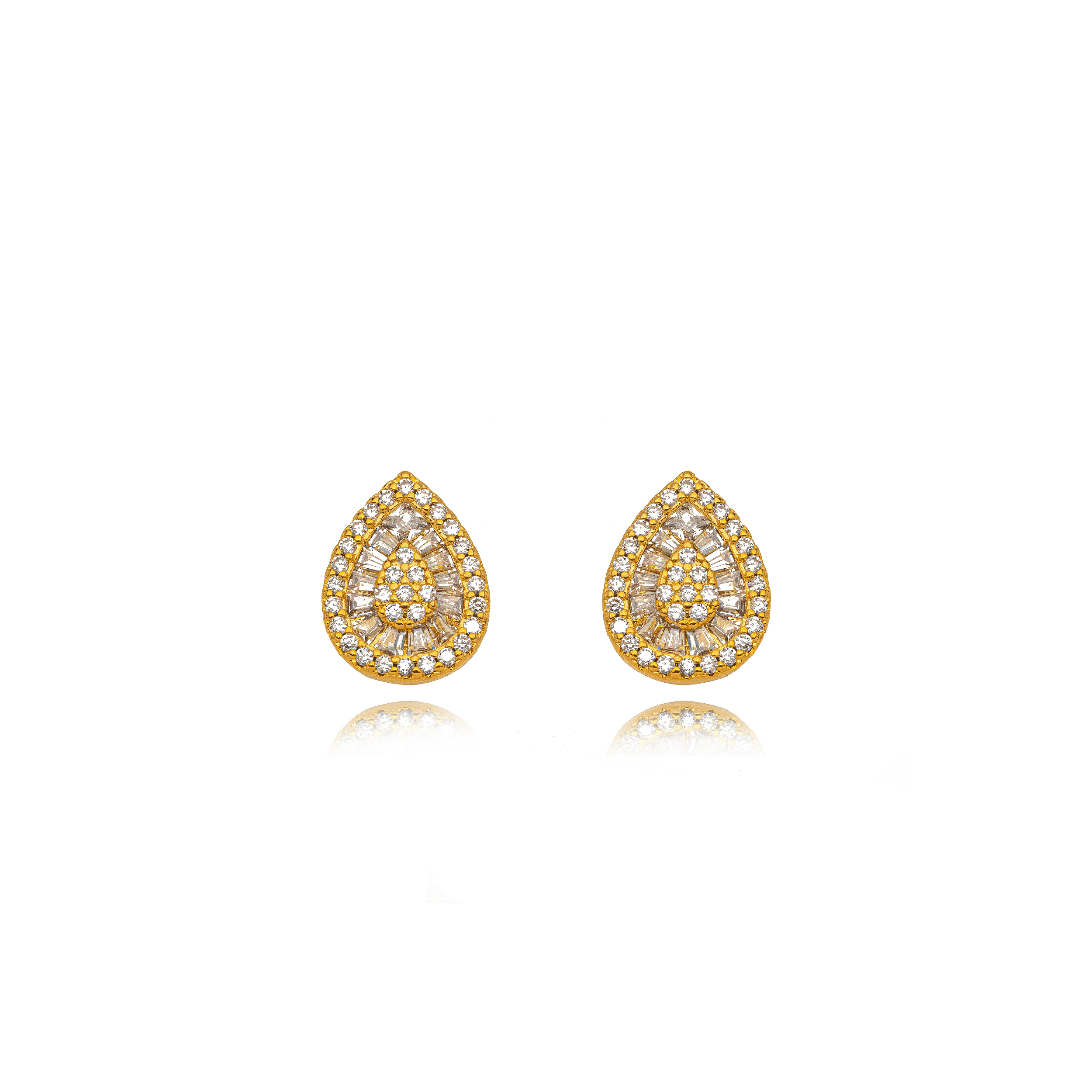 Semijoia Heloísa Maria - Brinco Gota Cravejada Confeccionado em Banho de Ouro Amarelo 18K.