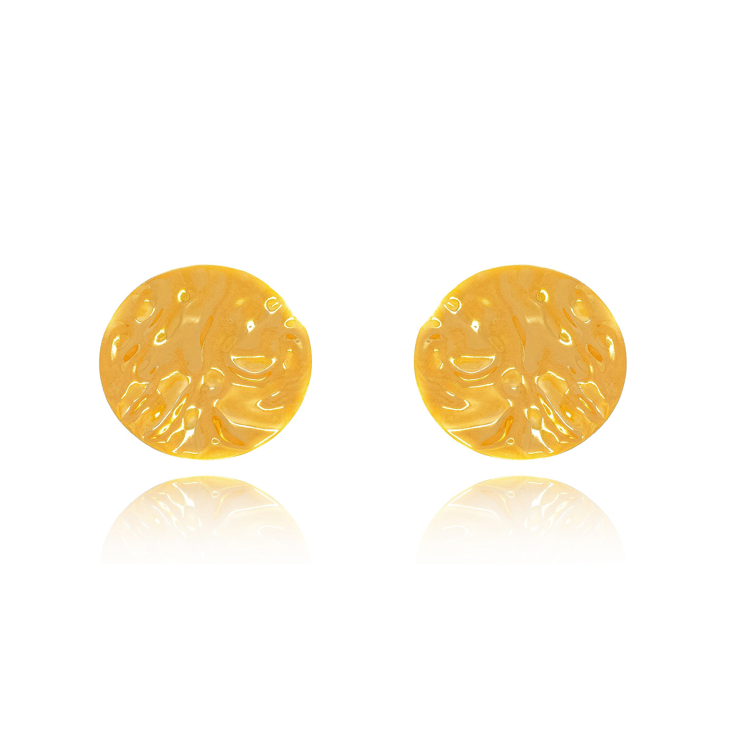 Semijoia Heloísa Maria - Brinco Redondo Detalhado Liso Confeccionada em Banho de Ouro Amarelo 18k.