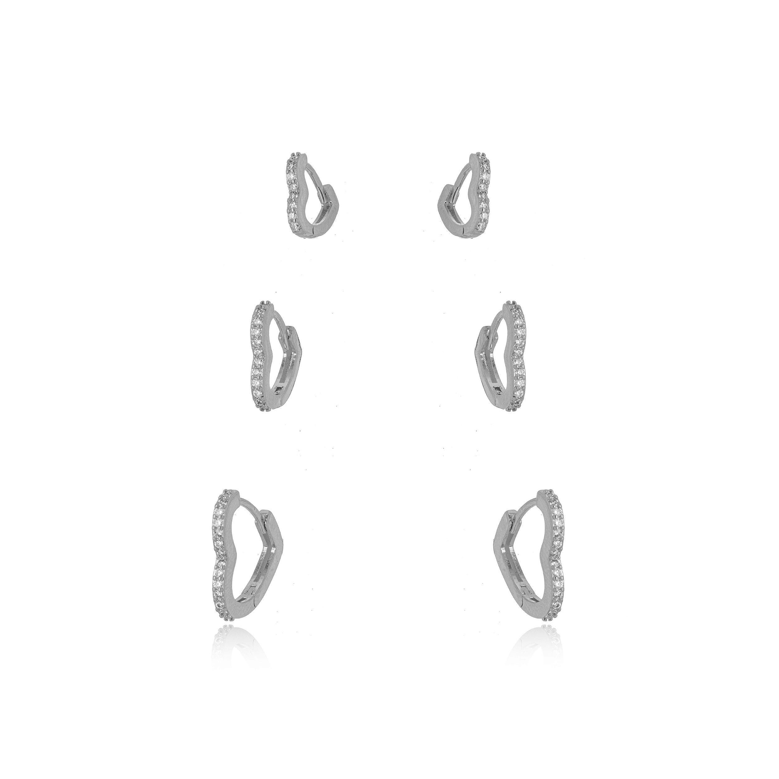 Semijoia Heloísa Maria - Brinco Trio Argola Coração Micro Zirconia Confeccionado em Banho de Ródio.