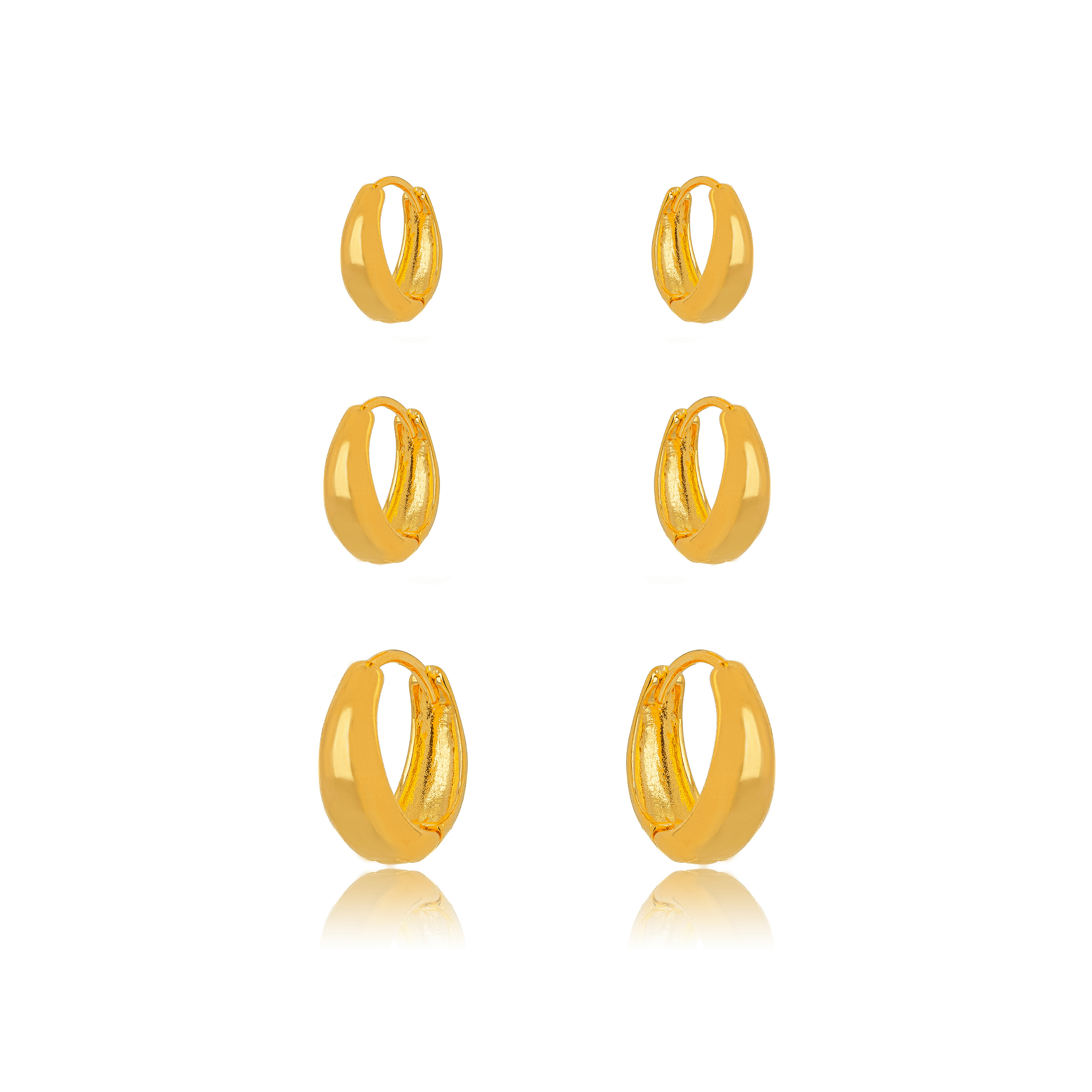 Semijoia Heloísa Maria - Brinco trio Argola Lisa Confeccionado em Banho de Ouro Amarelo de 18K.