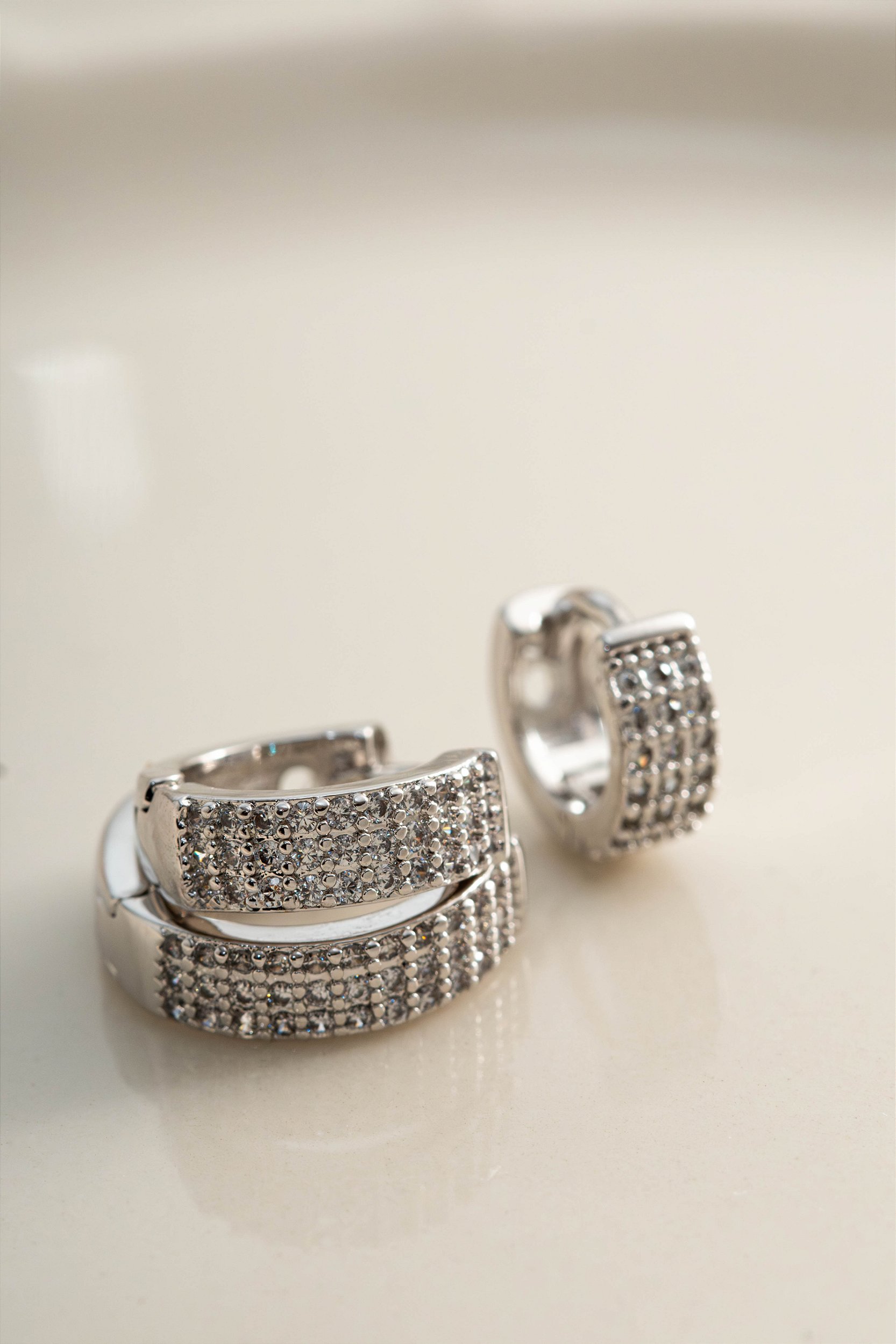 Semijoia Heloísa Maria - Brinco Trio Argola Micro Zirconia Confeccionado em Banho de Ródio Branco.