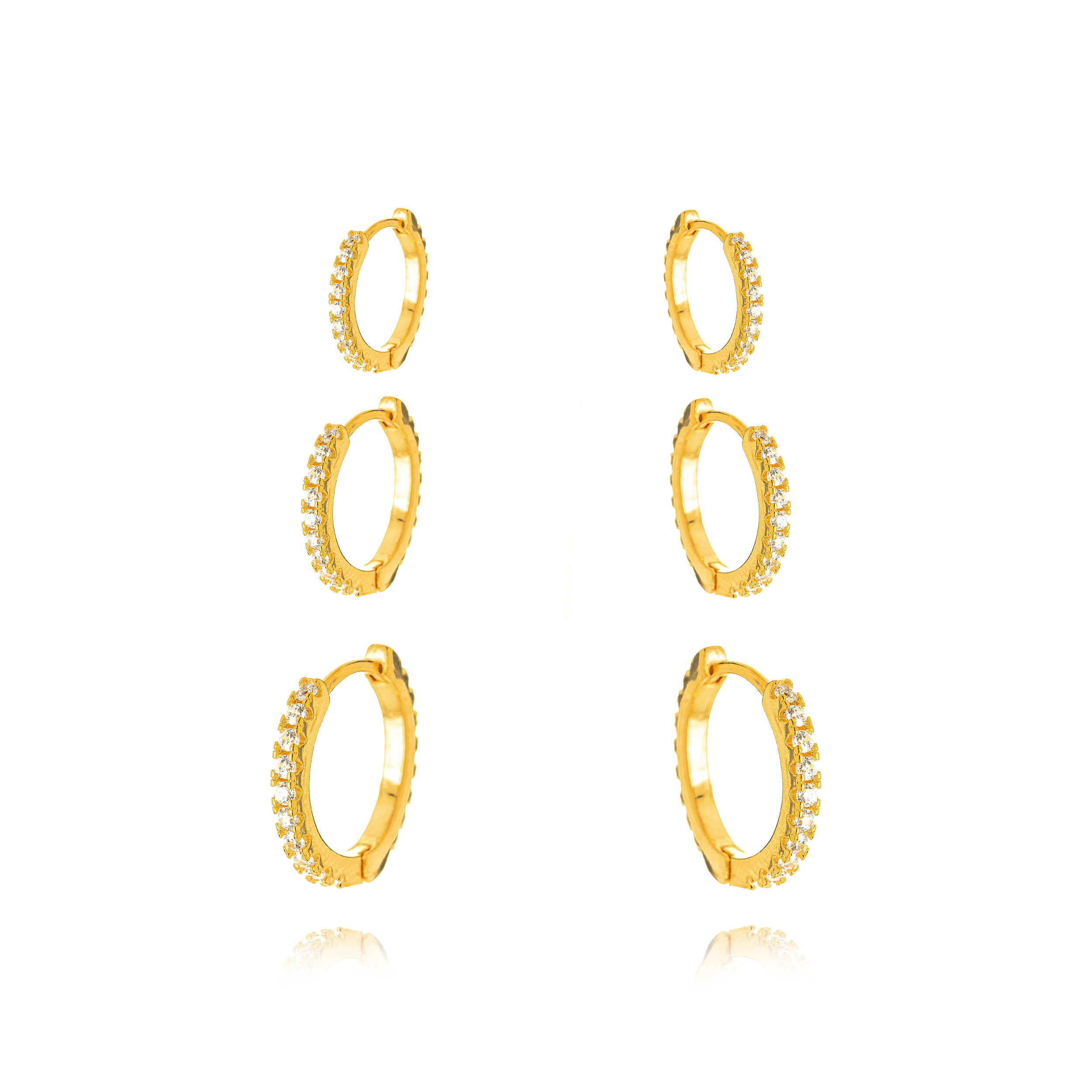 Semijoia Heloísa Maria - Brinco Trio Argola Micro Zircônia Confeccionado em Banho de Ouro Amarelo 18k.