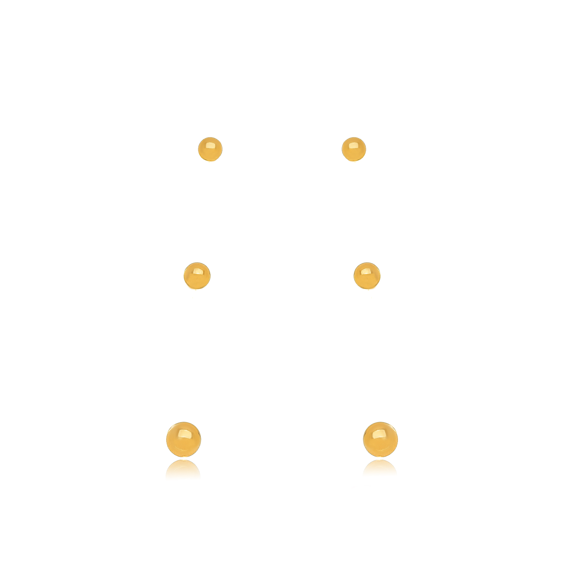Semijoia Heloísa Maria - Brinco Trio Bolinhas Lisas Confeccionado em Banho de Ouro Amarelo 18K.