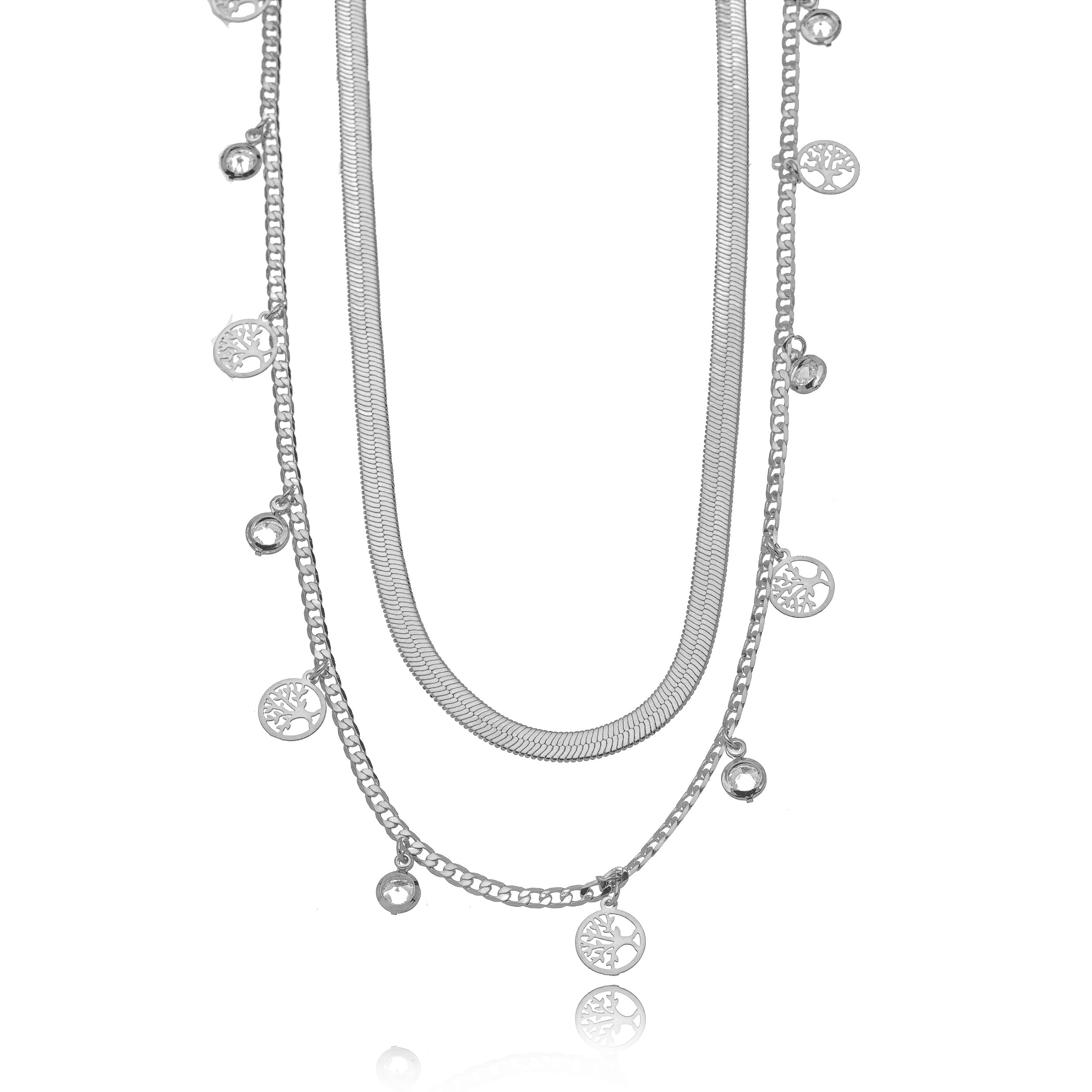 Semijoia Heloísa Maria - Colar Duplo Cristais Confeccionado em Banho de Ródio.