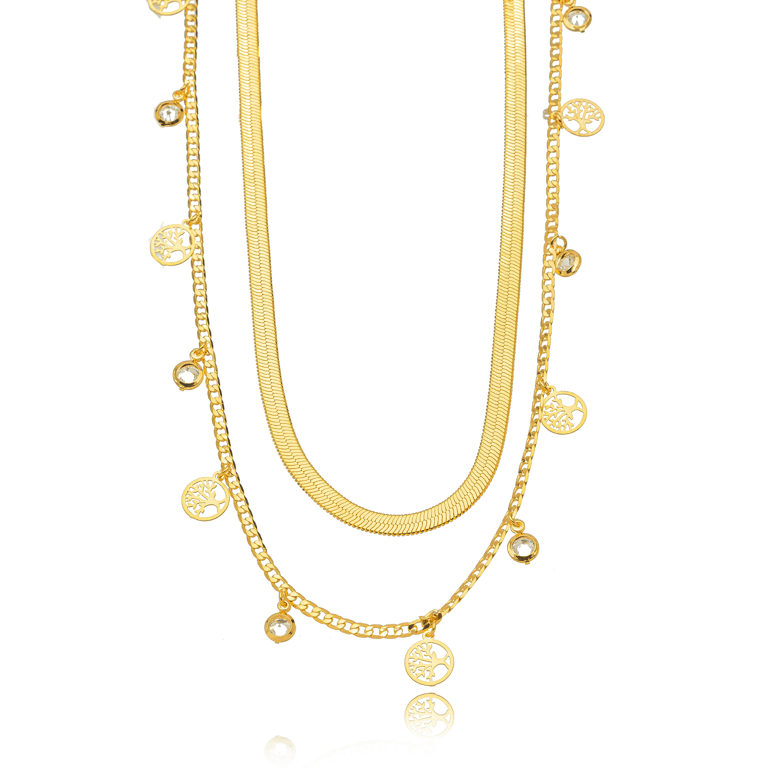 Semijoia Heloísa Maria - Colar Duplo Cristais Confeccionado em Banho de Ouro Amarelo 18K.