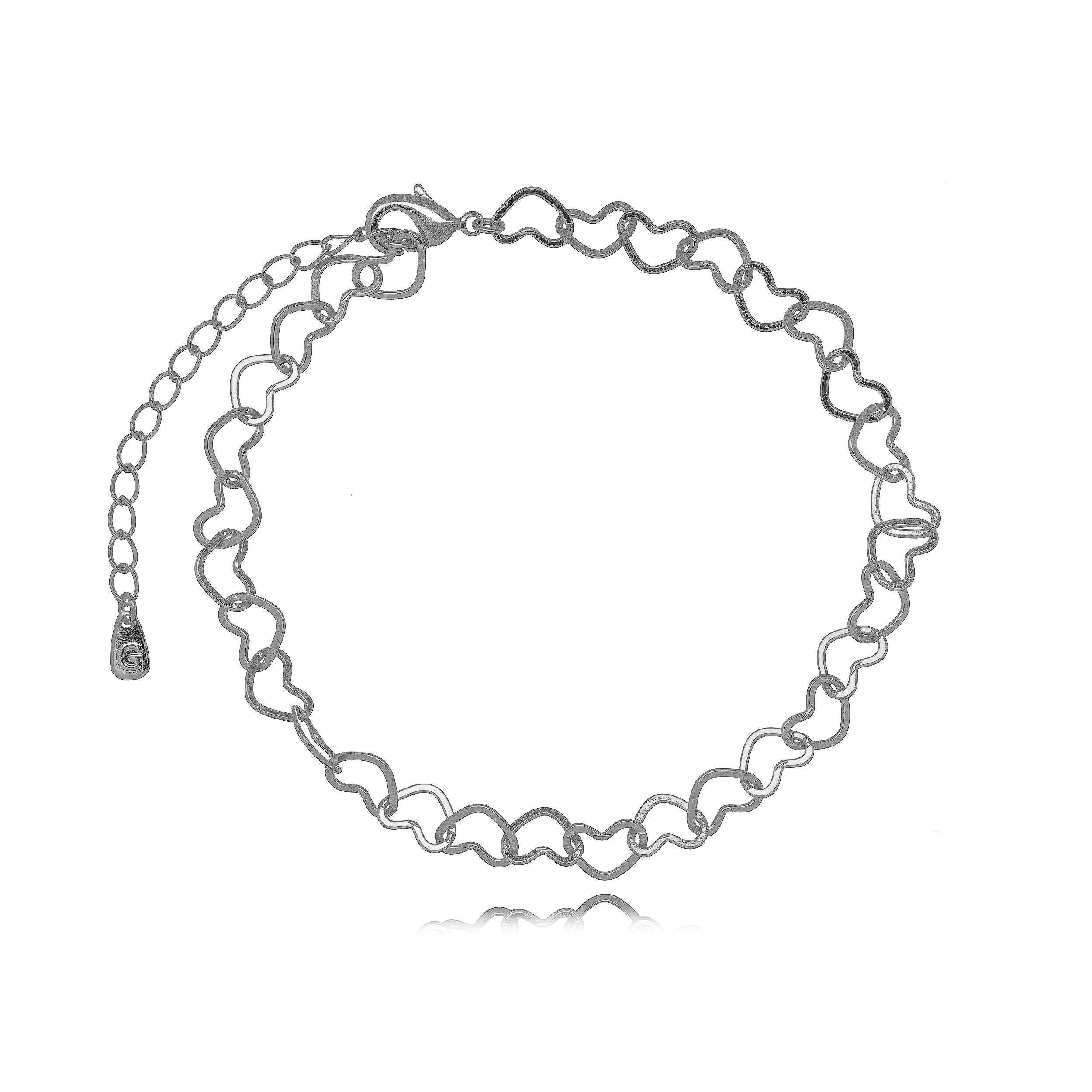 Semijoia Heloísa Maria - Pulseira Corações Vazados Lisos Confeccionado em Banho de Ródio.
